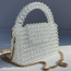 • Features a sleek built-in handle and a silver chain strap for versatile styling